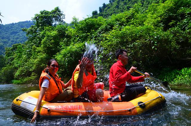 在古龙山大峡谷漂流是充满欢乐和激情的,绿意盎然的风景,生机勃勃的环境,以及老少皆宜的漂流,人们清闲放松的漂流在河面上,享受着无欲无求的休闲生活,抛开一切烦恼,与水共舞,肆意的打水仗,触摸水花的冰凉,体验炎夏的刺激,人生如此,何求于它?