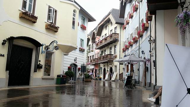 第三天由惠城区出发去博罗县,大概开了20分钟就到了五矿·哈斯塔特小镇,虽说是小镇,实际是一个楼盘,不过里面的建筑挺漂亮的,有一些小吃店,是挺出名的拍婚纱照基地,我哥哥同嫂子也是在这照的婚纱照,效果不错。