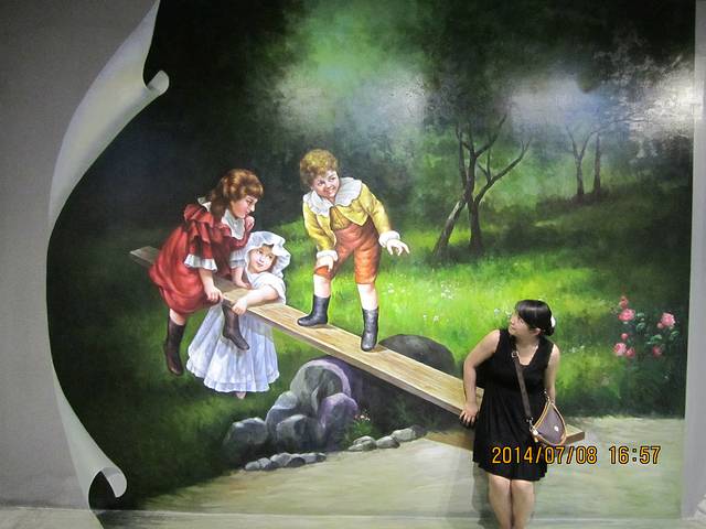 本来是包接送的,可是我们提前离开蜈支洲去奇幻艺术馆,晒的太厉害,连木头标志happy都没兴趣合影了。艺术馆就是专门拍各种搞怪照的,男生女生们一定要放开了拍才有意思哦。