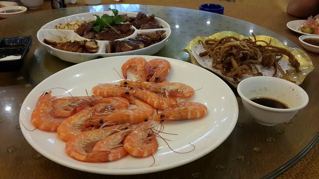 这是从海口琼菜王吃的,白灼虾、烧味拼盘、炸鳗鱼,后面只顾吃了,没拍照。