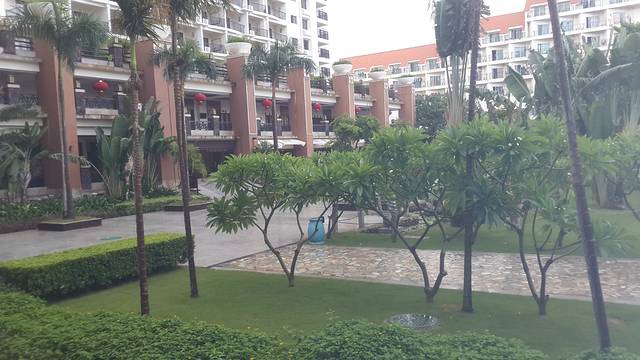 住的三亚玉海国际酒店,从去哪网找就行,各种价格比较很清晰。选玉海是因为离姑姑工作的地方近,而且很多旅游接送车都从国光豪生出发,路经此地。我选的园景房,因为最便宜,前两晚团的七星网210每晚含双人温泉劵一次。第三天团的华腾193元,团的里面没有写双人温泉劵,但是前台却给了,于是我们就收下啦,嘻嘻~ 玉海的园景还不错啦,早餐也可以,房间里有无密码的无线网哦,我买的无线路由器都没用上。图片是手机放在防水袋里拍的,那天早餐时下雨了。对了,网上房价没有含每人每天11元的基金哦,到店从押金里扣。