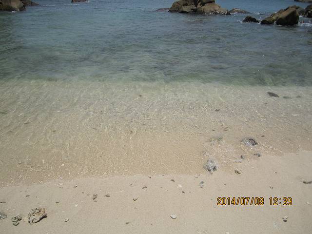 1、蜈支洲蓝蓝的海离你很远,近沙滩的水只是清澈的水,失望~~~中午的沙滩超级烫脚,游泳区感觉只划了100米,浪很大,近海水的沙滩是碎珊瑚,超级无敌割脚,我还没撑到走进深水里,就受不了走回岸边了,谁叫我不会游泳又没有准备游泳圈呢。最受不了的还是烈日当空照,回去撑伞凉快凉快咯。