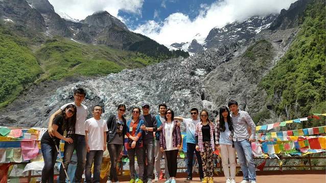 明永冰川是卡瓦格博下最长,最大的一条冰川。只为能近距离的感受它的魅力,所以毅然决然地跟随着根哥的脚步。但尽管负重为零的我,还是由于体力不支,而累的气喘吁吁。只是内心深处不可摧毁的信念以及在一旁的他那异人的体能鼓舞着我,不断向前。或许是出于年少轻狂的倔强,又或许是想挑战自己的体能。所以并没有像其他女生一般选择骡子为代步工具(丹姐也是好样的,赞哦)但庆幸的是沿途的风景无疑是对自己这个英勇决定的最佳褒奖。