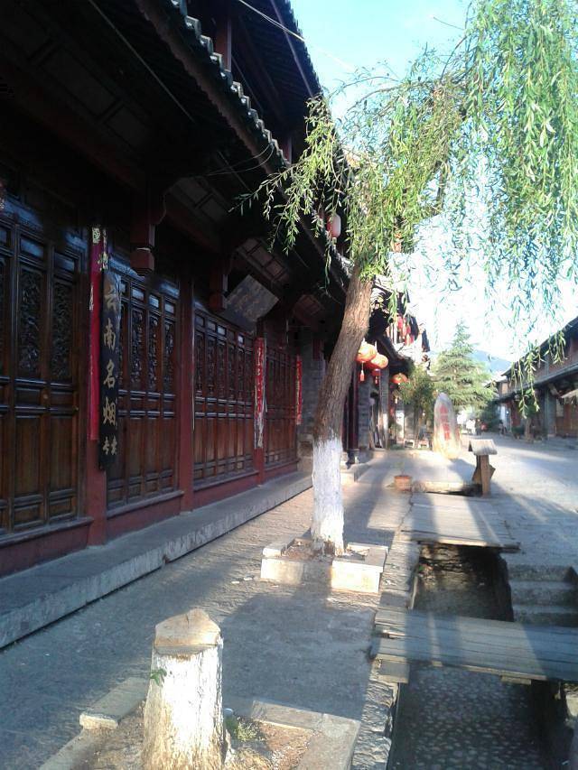 古老的石板路,被千年的光阴抚拭,呈现出一种圆润,光滑,洁净的姿态,并以一种沉静的表情迎接着熙来攘往的脚步。清澈的河水在窄窄的小河里静静流淌,随处可见的柳树,起伏飘摇,卖弄着它们妖娆的身姿,恰似欢快的舞蹈。
