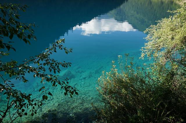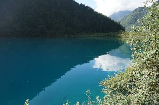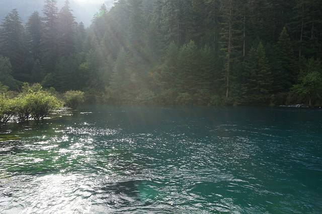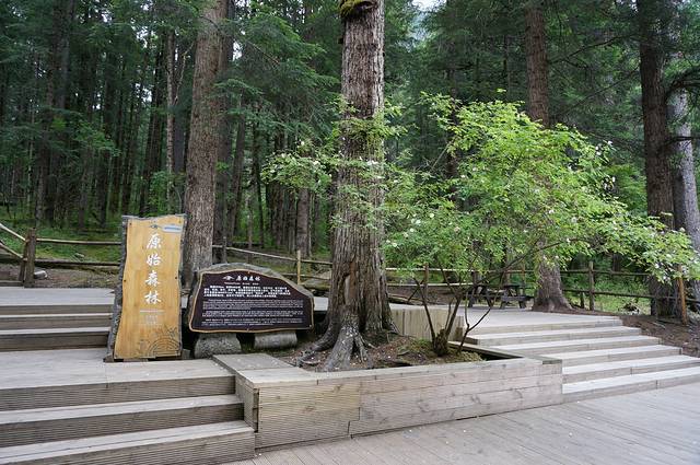九寨沟景区是个“Y”字型,我们第一天下午游玩的是上半部分的“V”字部分。午饭后,坐车直接到原始森林,这里可能是因为时间原因,因为到九寨沟旅游的基本都是一日游,早上进景区后,会最先到这里游玩,我们下午来时,这里基本没人。森林里空气清新,就像包场游,赞!