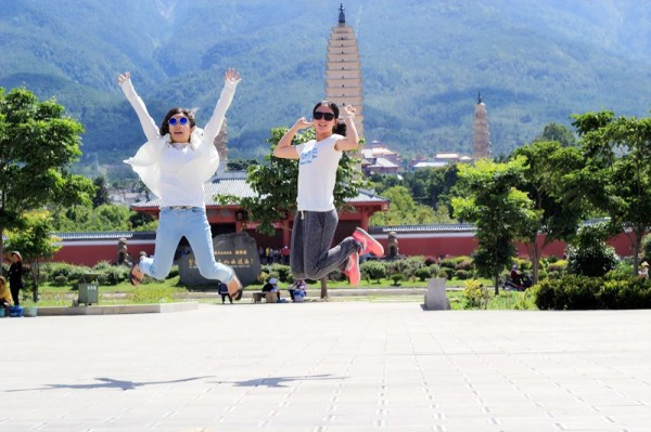这是我们去喜洲之前去了三塔前面拍照 司机说里面都是寺庙 三塔外面也能看 我们便没有进去 也算是省了门票