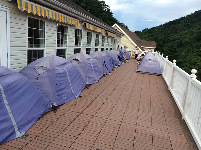黄山2日游是要住山顶的,因此预订黄山山顶的住宿是件必须的事情。黄山4月到11月都是旺季,寡人亲身窃喜过那些有钱也买不到地方住的人的痛苦,因此这种必须又重要的事情,我不得不传授点心得给尔等。黄山上最常见的就是6-8人的独立卫生间上下铺240左右一个人、8-12人的上下铺公共卫生间220左右一个人,周五周六是要加价钱的!(你问我有没有标间和总统套房?我会告诉你:金主、请直接打去哪儿电话订房吧!)。由于寡人无法忍受爬了一天山的那些陌生同性的汗臭、脚臭、打呼声!!又订不起标间或单间(700-2000多不等),再加上寡人喜好自然,因此就订了帐篷。(山上是一个性别住一个上下铺房间,所以不要指望和你的异性同伴住到一个房间里,除非你们人数正好填满一个房间,不管是哪种都不会经常换洗被子,请和衣而眠!)。就在去哪儿团购的山顶帐篷130元,由于是周五入住(记得我刚刚提过黄山的周五周六以及节假日都要加钱)入住前还要另外给酒店80元费用。住宿费用在210元(可以住2个人)。实际入住感觉:挺宽敞、晚上有点凉但是有2个人住就好多了哈哈,比他们的多人间不知道好到哪里去了!通过实地比较:排云楼的帐篷是最好的,欧式平台、听风闻露、环境最佳,请看图片。