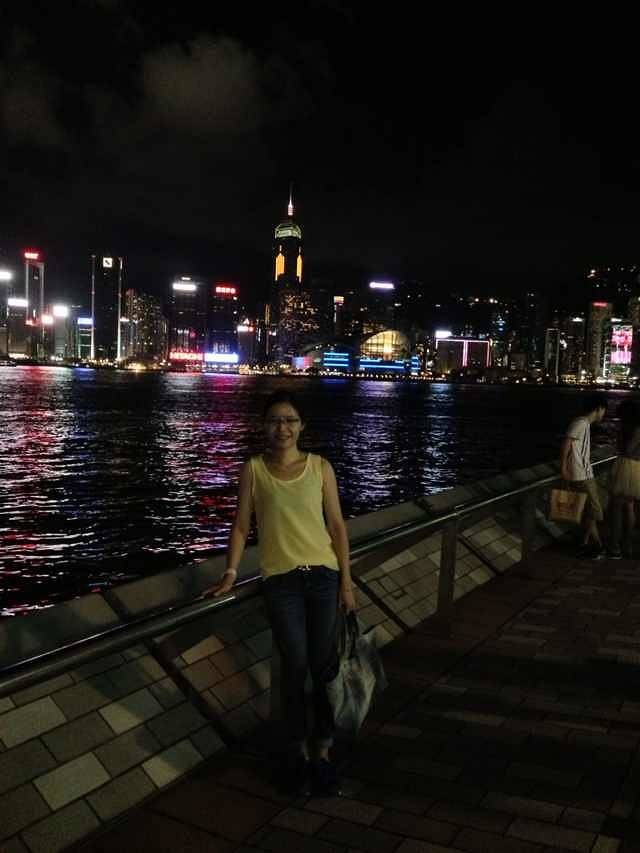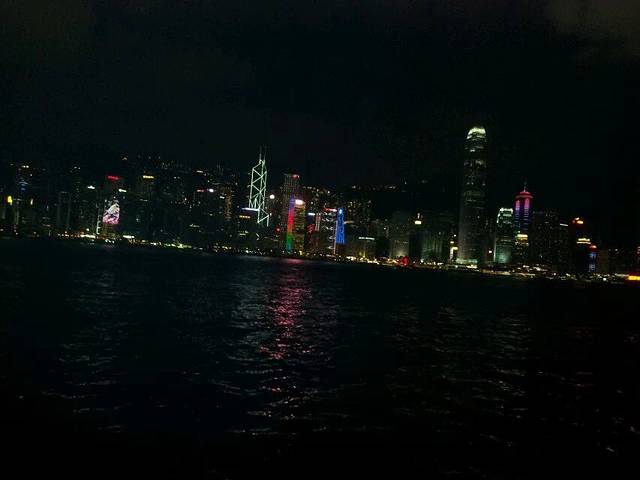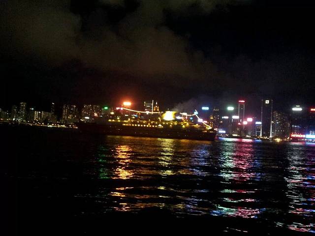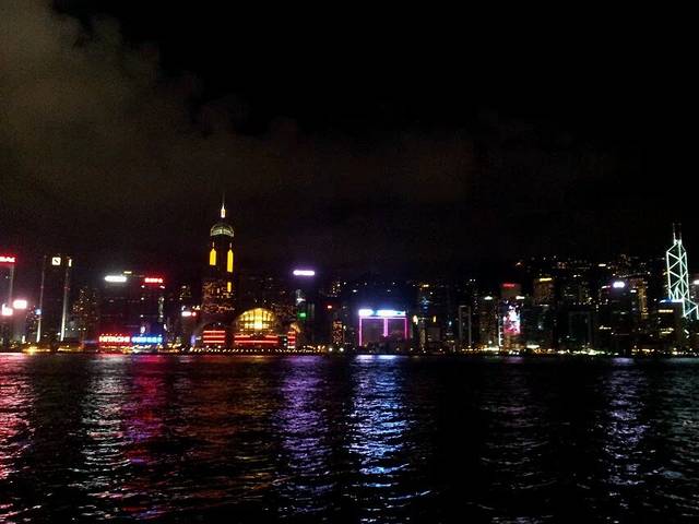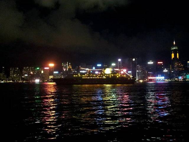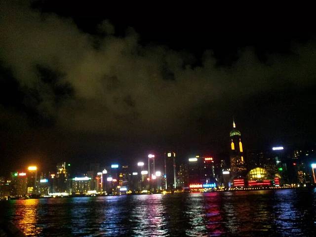 放下东西后就来到星光大道看维港夜景了,从尖沙咀住的地方走过去不远 当晚风挺大,夜景比照片上要漂亮,周围都是内地游客,暑假期间小孩子也特别多,有点吵,爬来爬去的。手机拍的,效果不怎么样,凑和着看吧哈