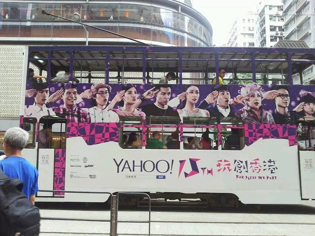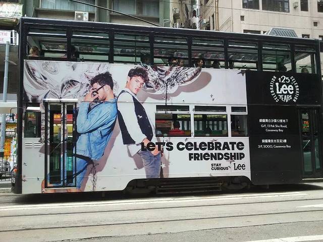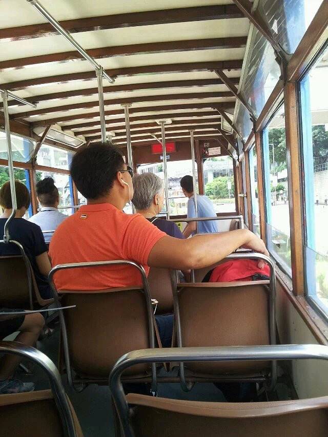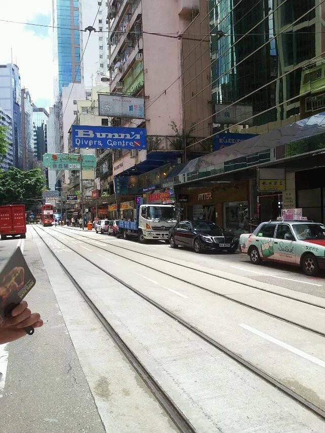 中环逗留完毕,同行小伙伴一心想坐叮叮车,但是又不知道要坐哪条线,站牌线路我俩是完全看不明白,就随便跟着人群上了一辆,结果是经过湾仔的,看到湾仔地铁口,我便拉着小伙伴下车,因为考虑到回宾馆方便。叮叮车开的时候很凉快,很舒服,也挺有意思的,车身的广告各式各样,小伙伴迷恋上了叮叮车,使劲拍个不停,我在逛服装店他还在路边对叮叮车一往情深……