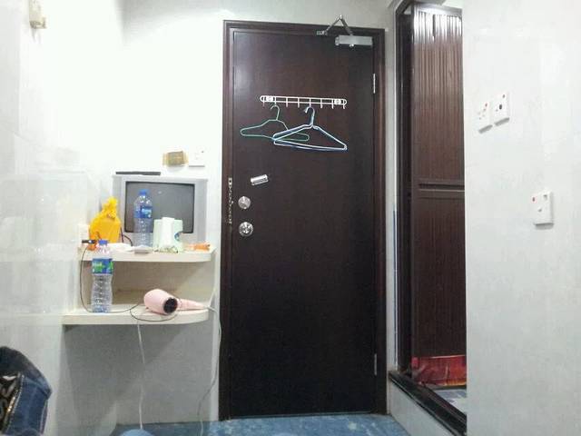吃完饭我们先回到朋友住的地方,他是先在网上团购的房间,但是我就麻烦了,联系不上约好的香港朋友,自己又没有提前订房,又一心想看夜景,回去也不是,不回也不是,心里特别没底,后来才知道香港朋友的证件出问题了,滞留在厦门回不来,没办法了只能在同行小伙伴住的宾馆同一层找到另外一家宾馆,方便大家联系,250港币一晚上,条件是相当一般的,什么都没有,不过比我们平时在网上看到的那些还是要稍微强一点,床挺大的,不是那种抽屉房,凑和一晚上了,哈哈,附照