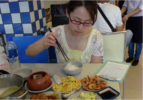 我的午饭,类似快餐的一家店,四个菜加排骨汤加稀饭米饭,共74元