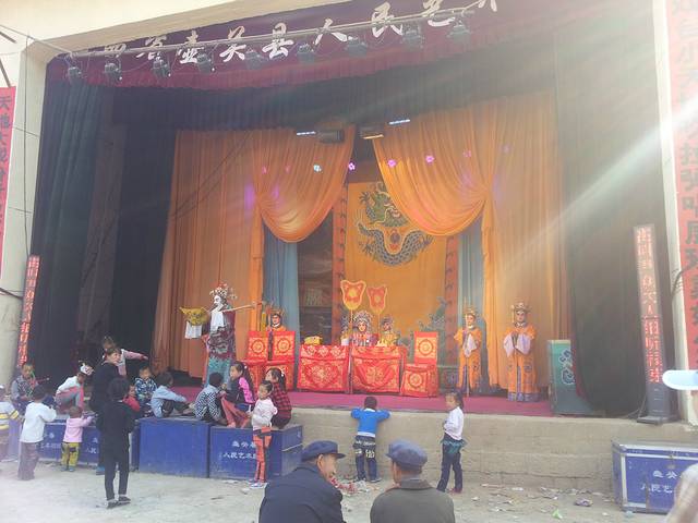 从集合点下去一点点山路,就是鹅村。这是一个在山顶里显得十分喧嚣的村落,我们来的时候正值村里的大集,有戏班子来唱戏。孩子们已经不再关心这些了,可老人们还在戏台边上看得乐呵呵的,戏台子跟前的大喇叭也好像专为老人们准备的,吵得这一片的山头回声阵阵。静谧的夕阳照在家家户户晒的玉米上,显得更加安静,而这片安静的阳光与嘈杂的戏台却没有半分违和,这个时候,好想静静的坐在山腰上,看光阴流逝。