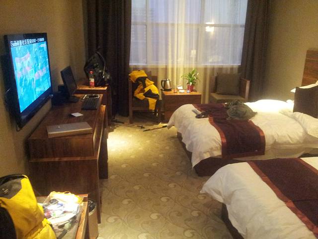 从天河瀑布出来,跟队友一起抢了一个车往回走,紧赶慢赶还是迟到了,上了车,回辉县,住宾馆。今天的住宿条件要好很多,打开房门的时候,我跟我的小伙伴发出了“喔~~”的一声由衷的赞美,电视、电脑、洗浴、大床,文明世界里该有的东西几乎都有了,晚餐吃点小火锅,虽然味道一般,可总算是见到油水了。