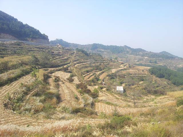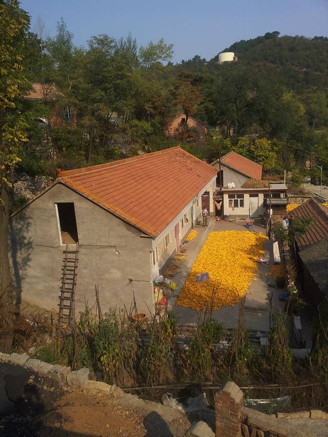 往韩口村走是一个枯燥的过程,车在砂石路上颠来簸去,时不时有不耐烦的司机要么不让路,要么疯狂超车,村子里好多人家占着半个宽的马路晒山楂片,有的还拿啤酒瓶子围起来,好在开车的师傅技术过硬,一路有惊无险。在这路上,第一次看到王莽岭,高峰突兀,看着有点肝儿颤。就这样到了韩口村。