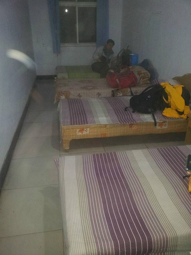 晚饭后开始分房,几经周折,终于跟三位队友住进了一个四人间。这个号称宾馆的农家乐院子,房间被我们五十来号人住的满满的,我的房间是新开的一间不太用的屋子,床单上还有前人的痕迹。虽然卫生条件不十分好,但想到本来我也不是一个爱干净的人,况且第二天早上三点半就要起床吃早餐,就赶紧躺下睡了。门外有潺潺的水声,倒是蛮有意境的,这个季节村子里一点都不冷,很想开着门睡,但是毕竟不是我一个人住,也就算了。晚上睡得比较早,想到第二天要爬那个张牙舞爪的王莽岭,反倒更睡不着了。翻腾了半宿,终于迷迷糊糊的睡了。