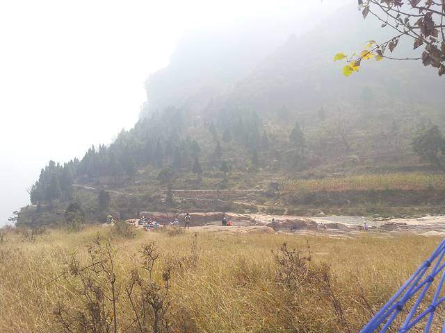 老龙口,队友们在龙口上休息,我在田里支了吊床躺着