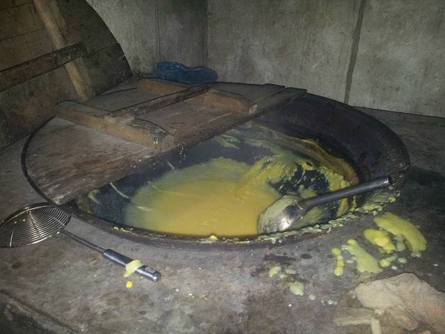 韩口村是一个很小的村子,村边上有一个大戏台,戏台下门洞上写着韩口村三字,戏台前可以停车,在这里大家收拾收拾背包,带上头灯和手杖,开始了据说只有1.5公里的徒步。本来以为1.5公里不算什么,我连手杖都没有拿下来,因为想着下午饭是一顿当地的农家餐,所以中午饭之后就一直空着肚子准备大吃一顿的我,一开始就走在队伍的前列,慢慢的,几番被超越,等到了瓦寨沟村,已经有好多人到了。晚饭是馒头花卷咸菜和棒子面粥。这时候我已经饿得味蕾大开。上了几道菜,好像是姜末松花蛋、烧茄子、芥末粉皮和炒鸡蛋。那个茄子烧的确实很棒,鸡蛋面裹着先炸一下,然后再用青椒一炒,香的我都想把菜汤沾了。花卷也不错,还有点味道和油水,特别想揣一个作为明天的午餐。但毕竟是第一天,表现的越腼腆越好,我最后吃了两个馒头一个花卷,喝了两碗棒子面粥。期间我们还去厨房看了一眼,煮棒子面粥的锅好大个,一米五左右的宽度,里面热热乎乎的粥,都是用盆来端,看着就爽。