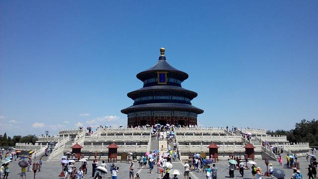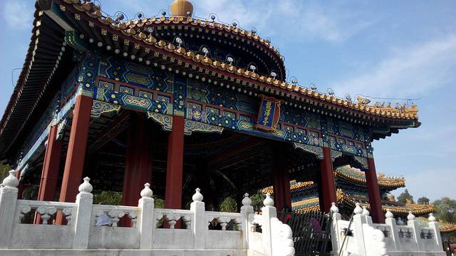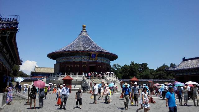 步行10分钟至景点天坛东门,联票35元。祈年殿、回音壁、圜丘,南门出,打的去纪晓岚故居