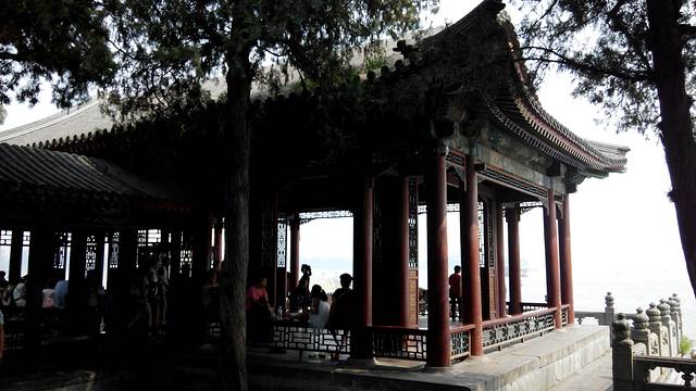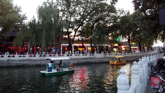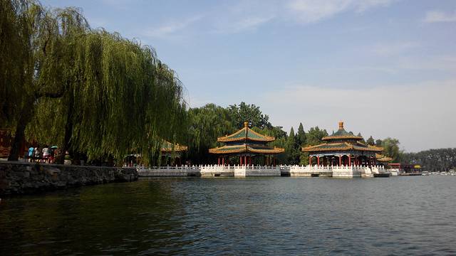 故宫出来后左转走500米左右到北海公园南门买门票,我不买联票,只想坐船游览,进入后往右一直向前走到有电动船坐的,120元1小时的6人电动船比莲花池的大船便宜得多