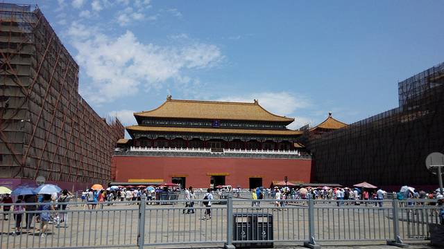 天安门城楼后面就是故宫,淘宝上面订门票可以免去排队时间,直接走VIP通道刷身份证进去(成人60元,学生、60岁以上老人半价要检查证件),故宫单向通道,统一从南面午门进北面神武门出。故宫好大,起码3个小时,所以一定要预先带备干粮和水.