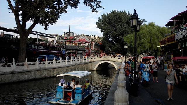 北海公园坐船后继续往北走到公园出口后右转100米左右过马路右转白米斜街走到尽头左转一直走到什刹海地铁口左转入就是什刹海。