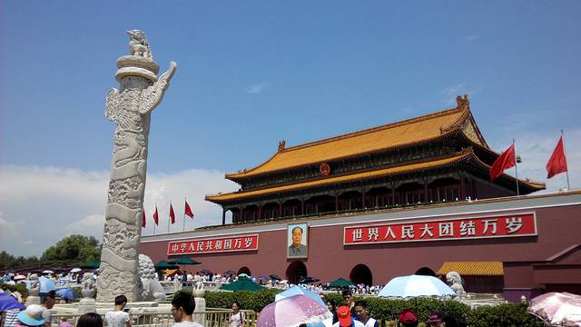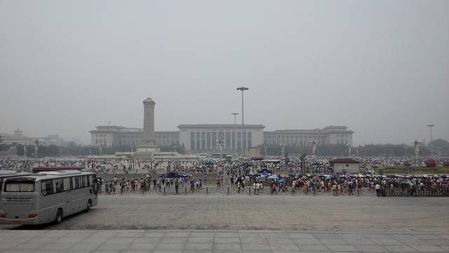 坐地铁天坛东站到东单站转地铁1号线到天安门东站出来排队安检进入,排队时旁边好多说多少钱不用排队之类的人,我们没理会,老老实实排一下队安检。