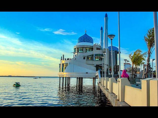 当你远眺着的它的美貌,已经莫名地为它砰然心动; 当你亲自触碰到它的灵魂,便再也难以抗拒,只想安静地将它拥入怀抱之中。 坐落于大海之上的海上清真寺,是整个望加锡最为令人难忘,最震慑人心的景观。