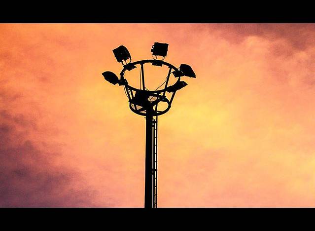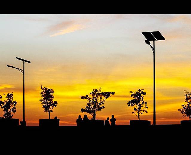【美丽的晚霞,照耀着夜幕下的路灯】
