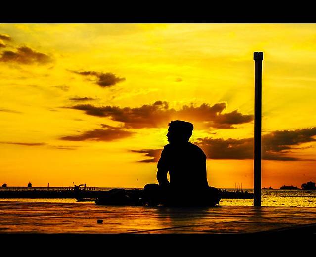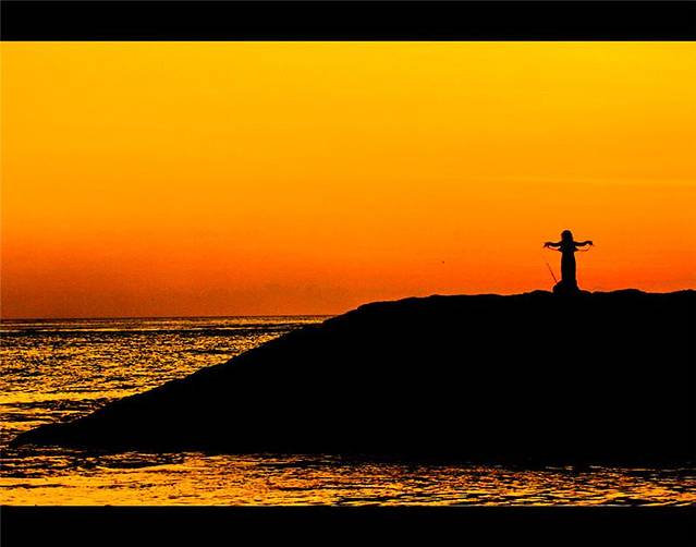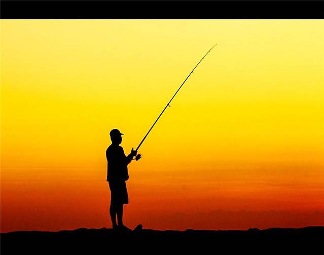 【日落下的垂钓人,沐浴在落日余晖中,心如止水】