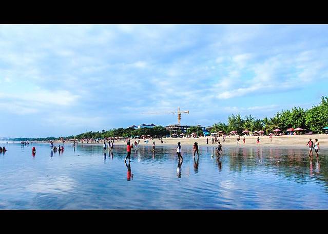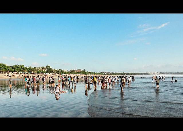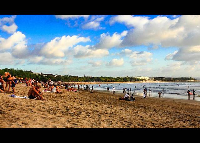 库塔是经济版的巴厘,这片喧闹的度假区,完全把它自己奉献给了娱乐和阳光。 拥挤,狭窄的小巷里,各类酒吧,廉价旅馆林立。拥挤的货摊前总是堆满了仿造的冲浪板,以及廉价的盗版DVD。