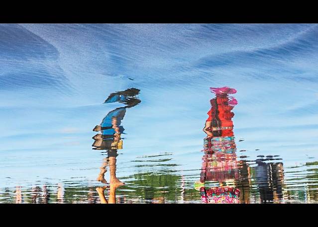 【游人在水中的倒影,仿佛一幅色彩浓重的油画】