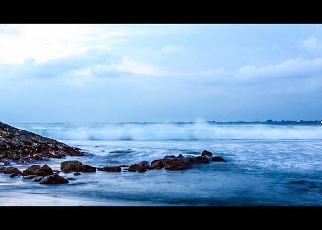 【黄昏下的巴厘岛,云层翻滚,波涛汹涌】