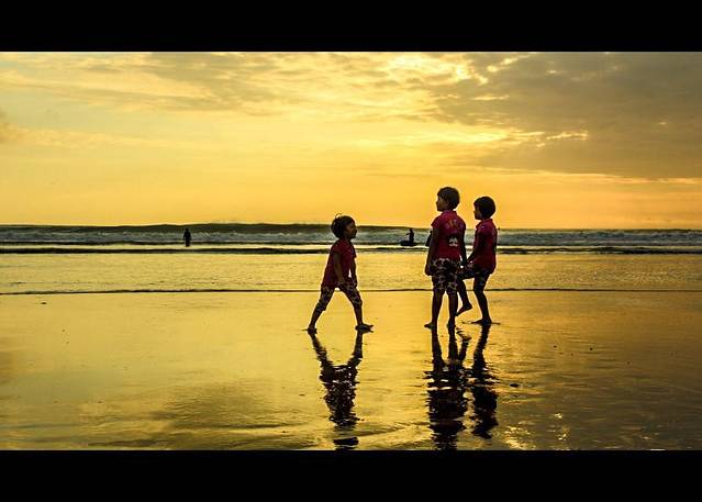 当金色的夕阳缓慢的划过海平面,消逝在远方海天相接的地平线尽头,伴随着海滩上的欢呼雀跃,巴厘岛迎来了它最为绚烂的时刻,唯美的日落令人心醉,夜晚的狂欢即将开始。