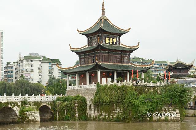 从黔灵公园打车到甲秀楼大概15元。甲秀楼算是贵阳的地标景点了,站在三层可以俯瞰南明河。来了甲秀楼可以一并看看附近的翠微园,一个小花园,内有茶馆,古风古色,较有味道。