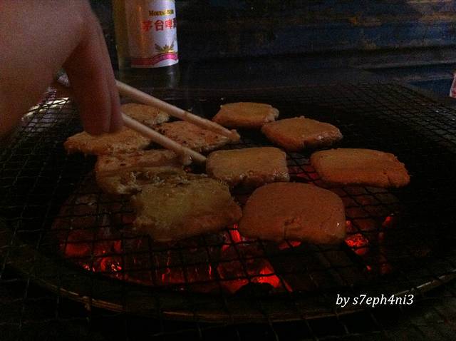 这种手撕豆腐,在贵阳的夜晚随处可见,炭火上架上架子烤制,可以让老板帮着烤好也可以自己动手,只不过自己动手火候不太好把握,有可能会碎或者糊~~~