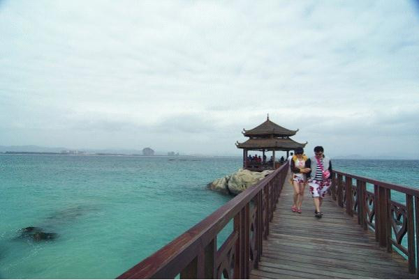 蜈支洲岛的海是那么的清澈,沙滩是偏白色的,软软的脚感,我觉得我的照片,诸位都要加上那么点点的想想在里面,如果没有这厚厚的云层,我想应该不输东南亚的海哦