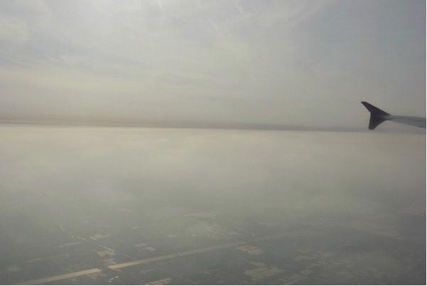 刚离开三亚时的太空,当天三亚的PM2.5值是45.