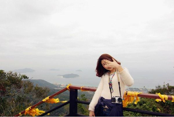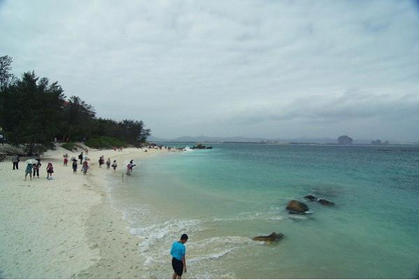 在山上望下去就是亚龙湾海滩了,原本应是非常美丽的景色的,但是这个天气,真真是看不清楚。没关系了,旅游,玩的是心情,那么我就充分想象了一下,天气晴朗的时候,片片不应该是这样的哈