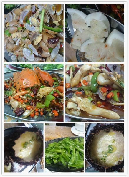 海鲜是自己在一市场的海鲜市场买的,和乐蟹25元一只买了3只,加工费是10元一个的,蛏子王貌似是50一斤的吧,记不清了,买了30元的,加工费是10元的,海胆是两只15元,蒸蛋的加工费是5元一个的,芒果螺是15元的,加工费是10元的,四角豆买了5元的,加工是5元的。椰子饭香甜的,30元。