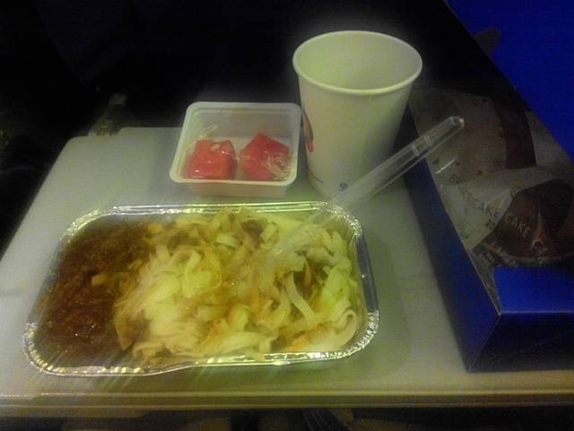 飞机还没起飞,先给大家发点吃的,牛肉面条