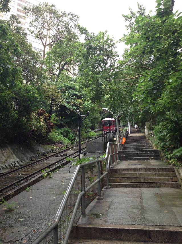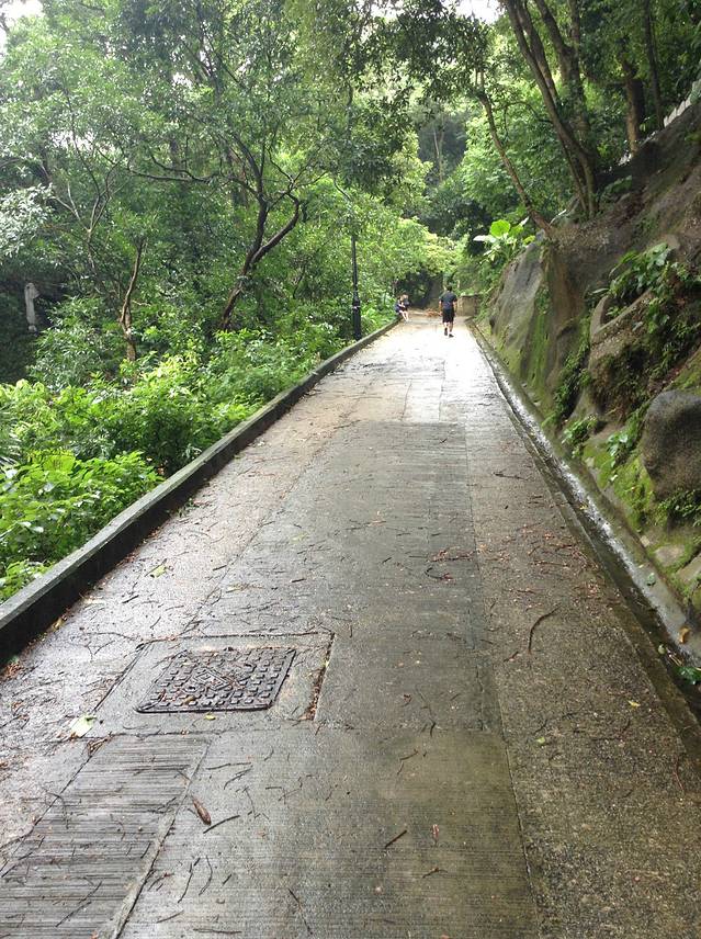 第三天,香港的天气仍然烟雨蒙蒙,阴沉的天气有时会突然降下倾盆大雨,而天气的潮热质感则更加增益一层,而我就是在这样的天气下,决定早上独自走路登上太平山顶,听说半山住着很多富人,人家在半山的房产前都写着私人道路,煞是高大上起来,而我在向上努力爬山的时候可以看到有些外国人将太平山顶当成锻炼休息的地方,人家已经从山顶向下返回了。