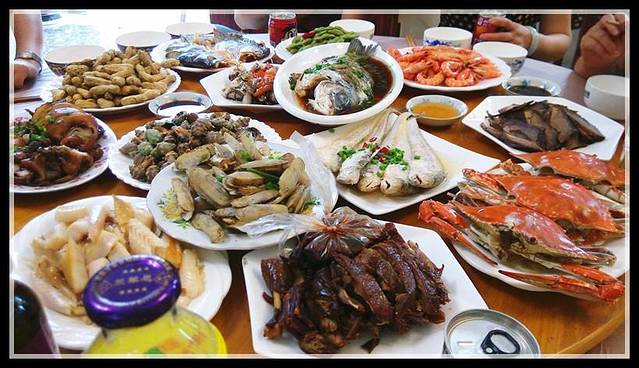 回到宾馆,洗了澡下来。就看到这么一桌菜。全家都喜欢吃海鲜,所以这次来特意多加了点钱,让老板娘多做些菜。但是,没想到可以这么丰盛。忽然觉得,旅游要是没好吃的,多没劲啊。