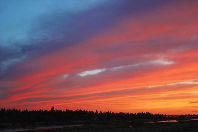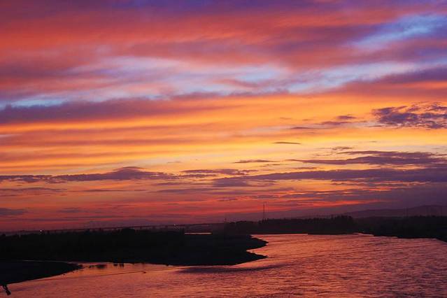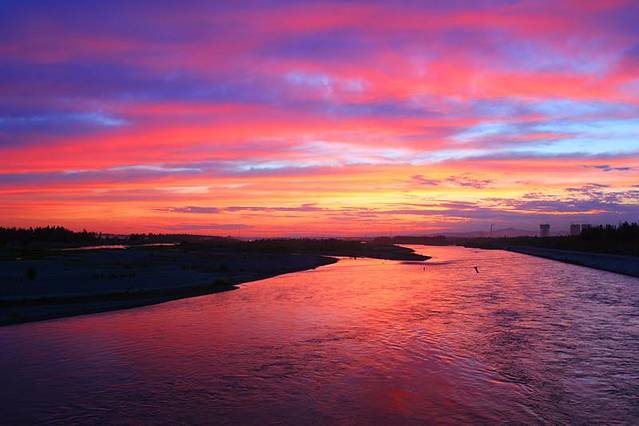 伊犁河是新疆北部流经伊犁州的一条最大的内陆河,距离伊宁市最近的河段处有一座著名的伊犁大桥,“伊桥落日”历来是摄影爱好者的良好题材,由于上天对我们的格外眷顾,让我们邂逅了一段美好的时光,当时我们还抱着要不要去看夕阳的态度来到伊犁桥畔,当我们走下车看见那绝美的彩霞顿时把我们都惊呆了,我从来没有见过这么美丽的日落。当时的心情真的是很激动很开心,喜悦与感动并存,充满着整个内心,太美了我不知道该怎么样来描述 天空原来还可以是这种颜色。