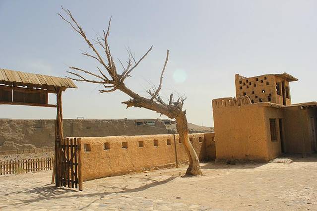 维吾尔民居,上图这户人家大门开一半 中间掉帘子说明这家女主人和小孩在家,这时只有妇女才能进去!