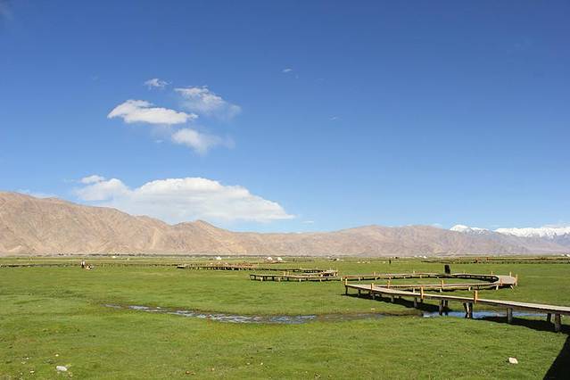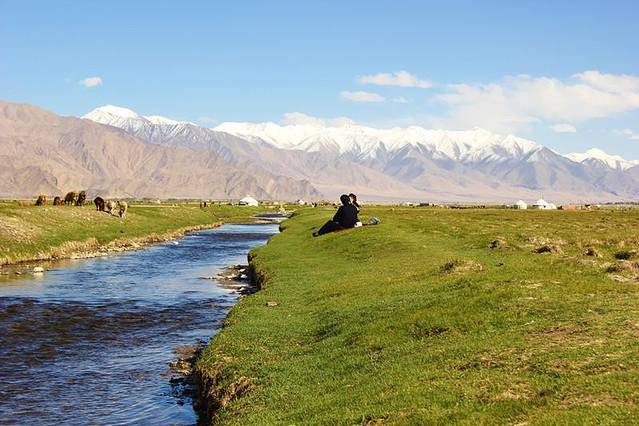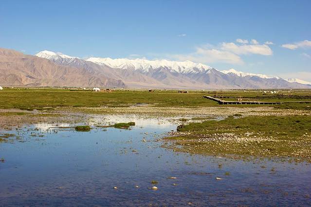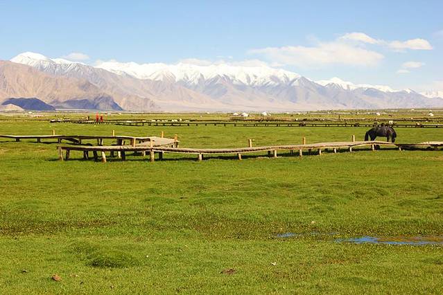 雪山 草地 沼泽 金草滩是塔县县城边缘最大的草场,天然的牧场。