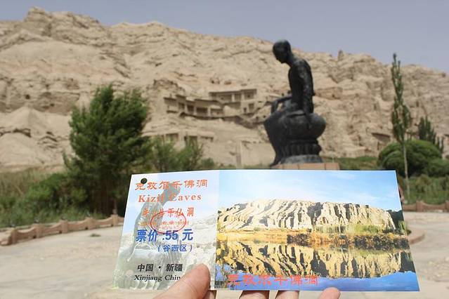 价格不菲的门票,克孜尔和敦煌一起享有中国四大石窟的美誉,克孜尔石窟大约始建于公元3世纪,比莫高窟还要早。 莫高窟以多姿多彩的佛教壁画而闻名于世,而克孜尔石窟更是一条壁画长廊,其内容之丰富,数量之庞大,延续时间之长,在我国现存诸石窟中都居于首位。大肆破坏劫掠克孜尔石窟的德国探险家勒库克曾经厚颜地称赞说,克孜尔石窟的壁画是他们"在中亚任何地方所能找到的最优美的壁画。"