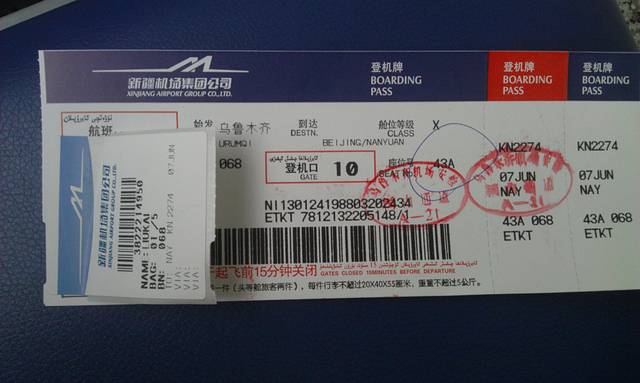 其他的火车票什么的没有拍照 只有这张手机拍的乌鲁木齐--北京的登机牌。