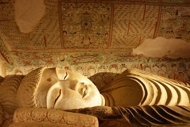 就算在今天沿着悬空搭建的水泥台阶爬上去也有些胆战心惊。在魏晋南北朝那个战乱的年代,古人带着对佛国天堂虔诚的信仰,踩着悬空的木制台阶,在峭壁上开凿出一个个洞窟与佛像。