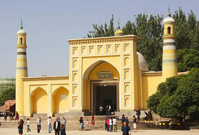 “大漠孤烟直,长河落日圆。”佛塔、黄沙、土堆诠释着新疆的神秘,而那些奔跑的骏马;洁白的羊群;悠扬的牧歌和美丽的姑娘又演绎着这片土地的富饶。这里多民族不同文化的交融形成了新疆独特而迷人的异域风情,这里就是最新疆的地方、维吾尔族集聚区、我国最西部的城市、喀什葛尔不到喀什不算到过新疆,5月27日上午十点左右我们到了喀什我们住到了喀什麦田青旅,环境还不错,窗户外就是秀美的南湖公园,当天下午我们就在喀什老城逛了逛