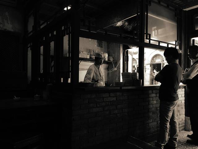 下午去了前门,那里有一家卤煮店。人不多,师傅悠闲地做着卤煮。